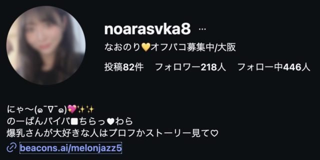 Xは援交女性がいるので、お金を払えばオフパコすることは可能です。Xで「大阪 ホ別」「大阪 p活」などで検索すると見つかります。ただ、こうした女性は性病にかかっているリスクがあるし、業者の可能性もあるのでおすすめできません。