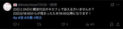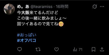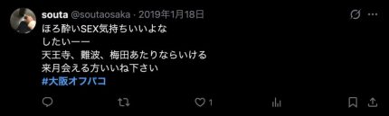 Xで「オフパコ 大阪」で検索するとこんなツイートを目にするはずです。