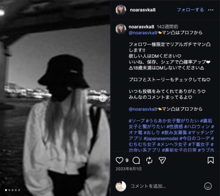 インスタで下記のようなエロ投稿をする女は99%ネカマです。DMを送っても、アフィリエイトリンクを送られるだけです。