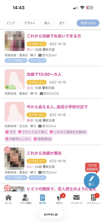 ご飯を一緒に食べた後でオフパコしたいなら、ピュア掲示板の「今からあそぼ」を使いましょう。