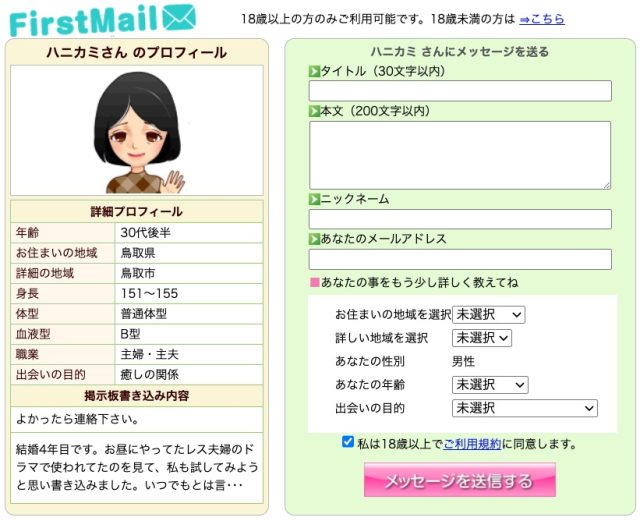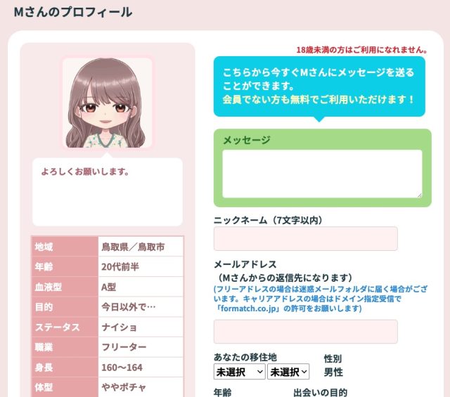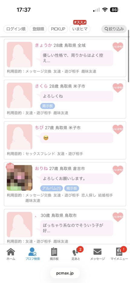 プロフィール検索機能があります。鳥取在住の女性を簡単に探せます。
